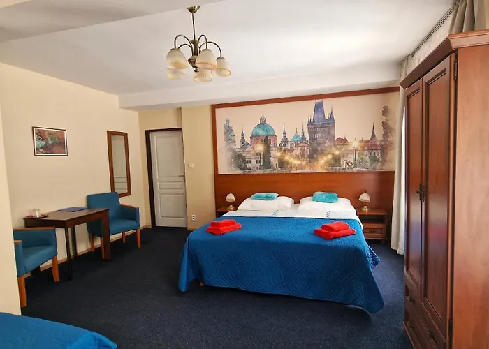 Aaron Hotel Praag met 15 kamers biedt een terras op de binnenplaats met een zitruimte en is op s10 minuten met de auto van De Karelsbrug geplaatst. Bezienswaardigheden in de omgeving, waaronder Karlín, liggen vrij dicht bij dit hotel in Praag.